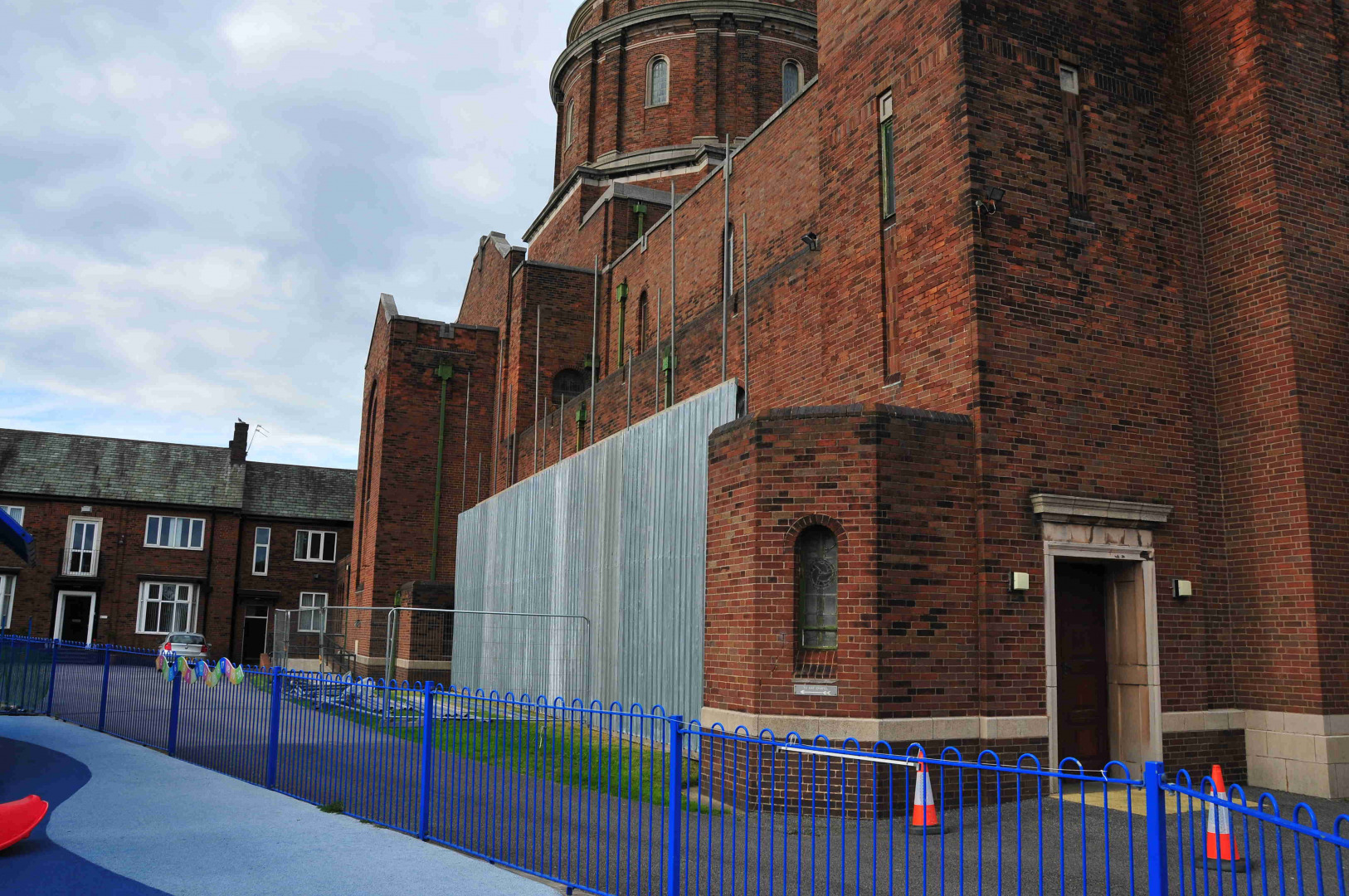 11th June: Scaffoldings are going up outside & inside – Close views of the damages to the walls