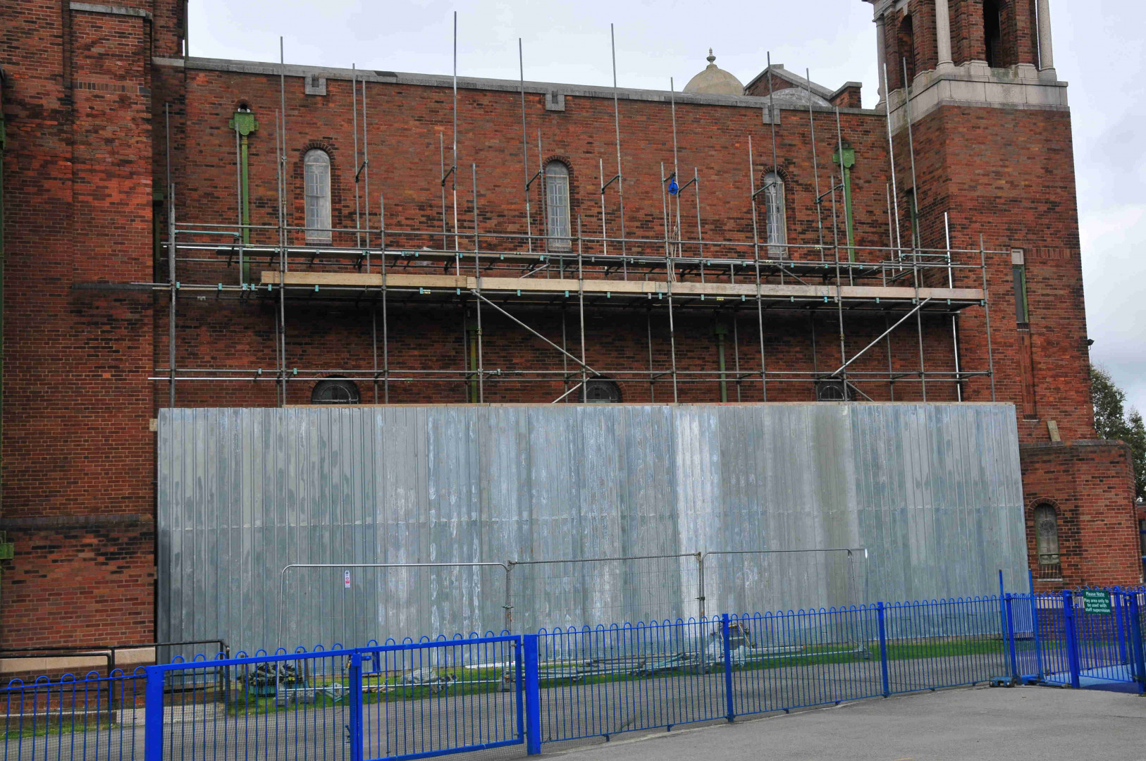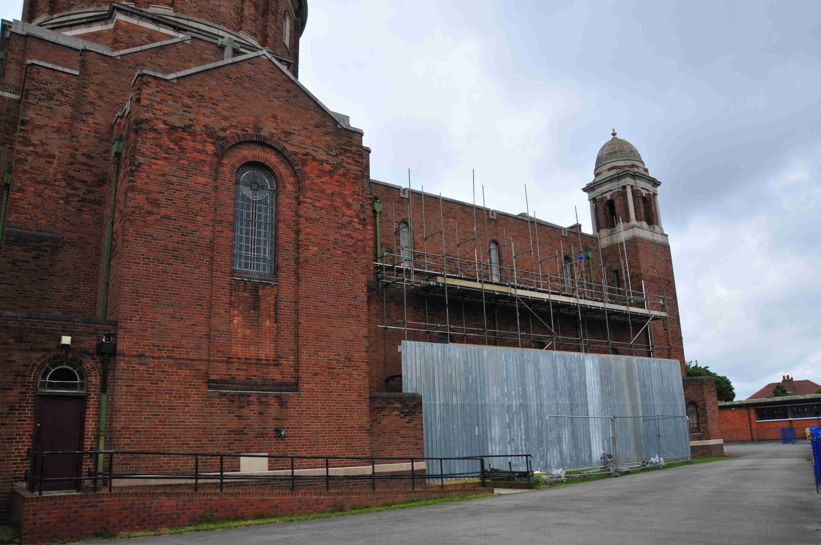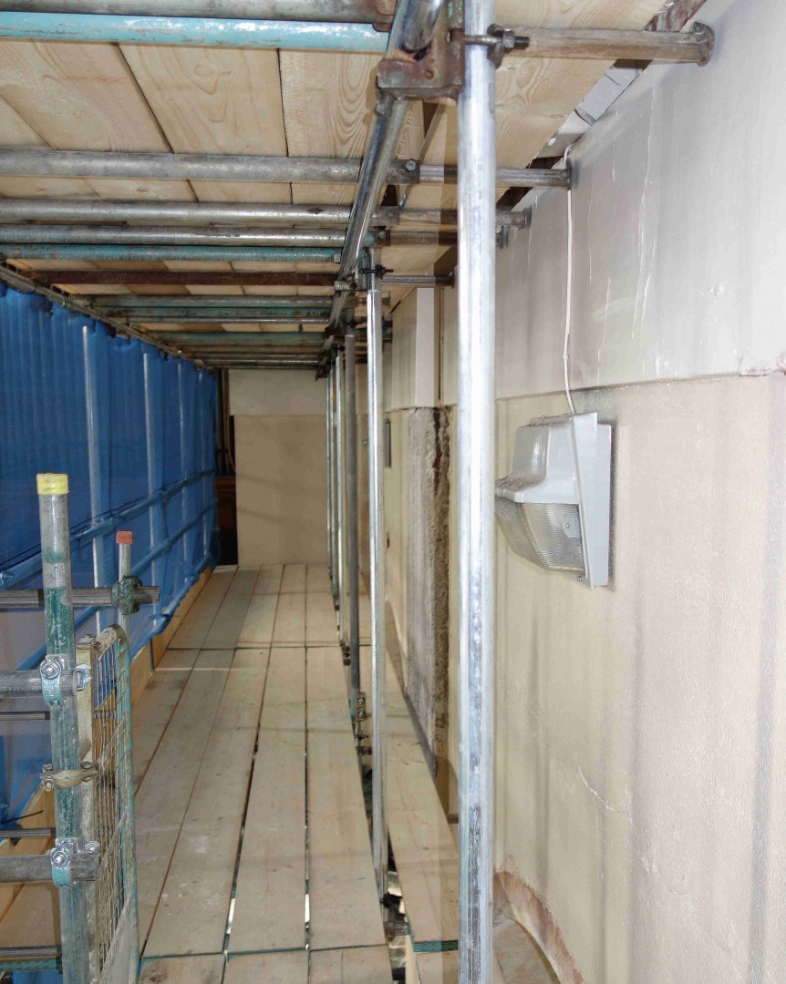 9th June: Scaffoldings are going up outside & inside – Close views of the damages to the walls