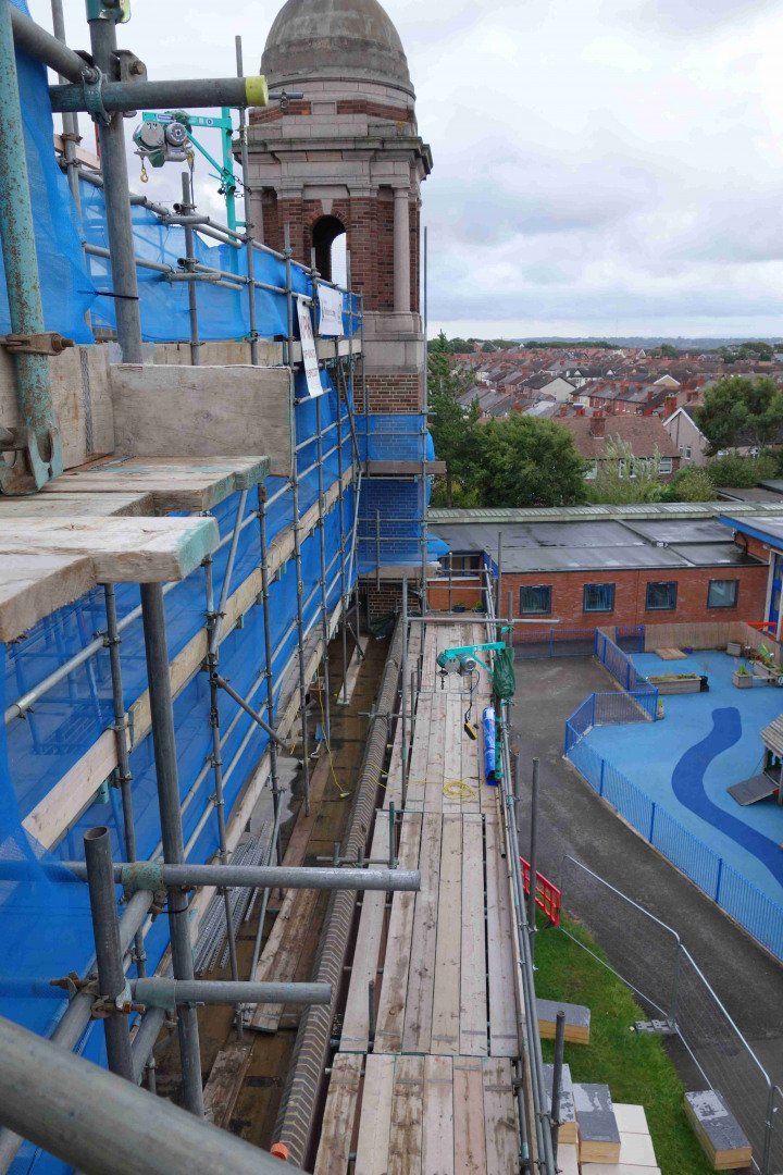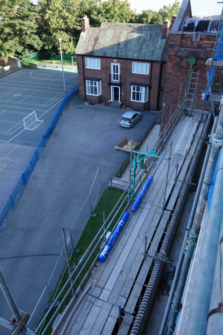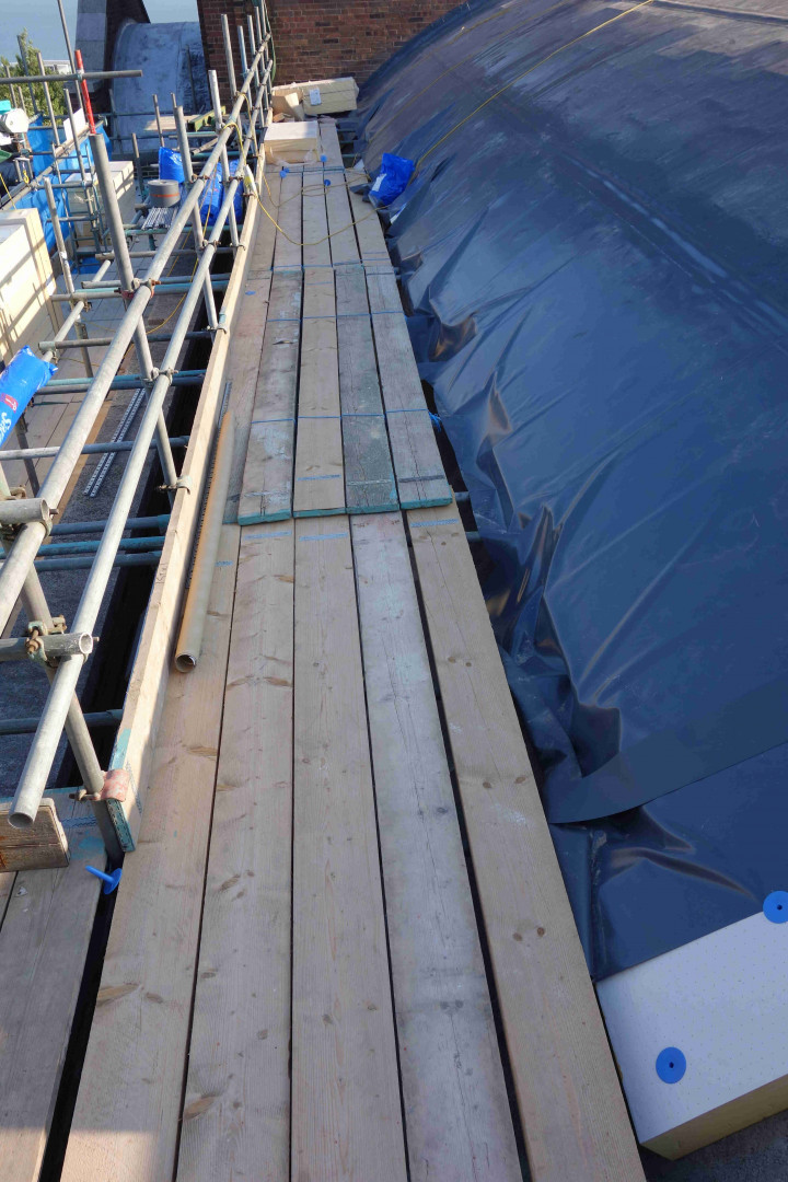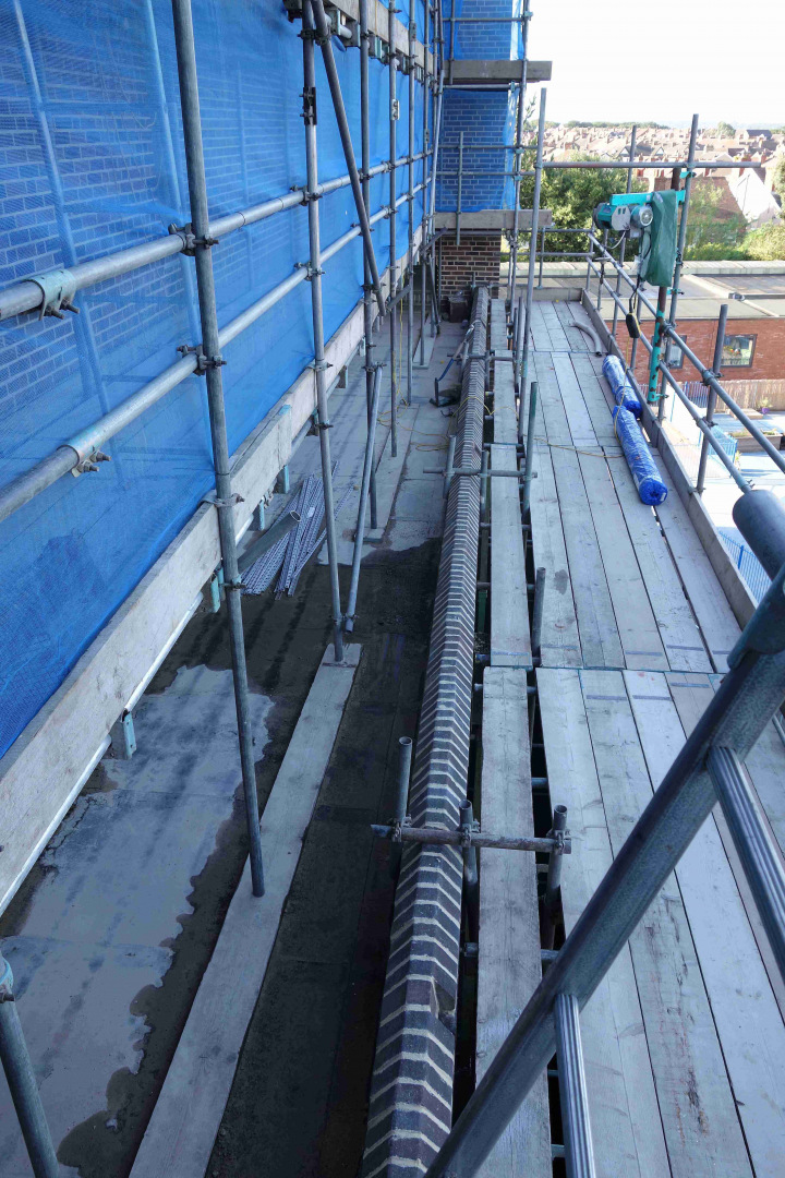 23rd July: Outside works – repairs & insulation of the barrel roof, repointing the brickwork