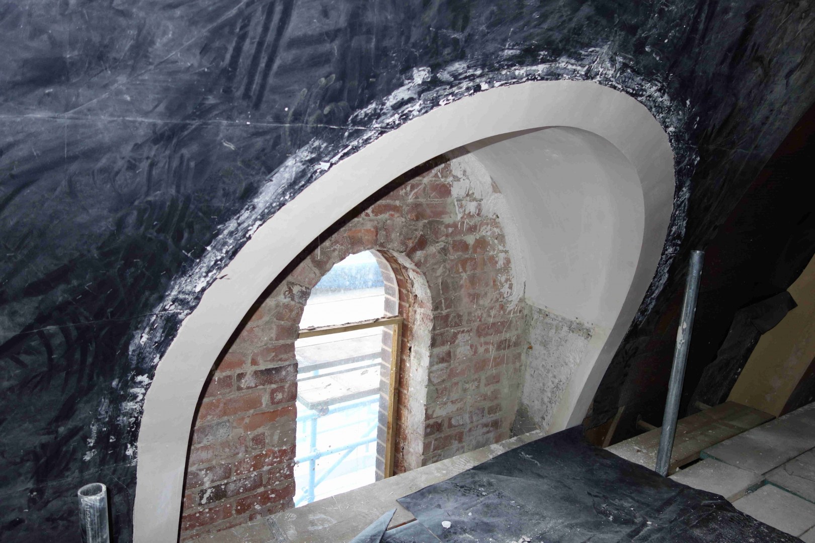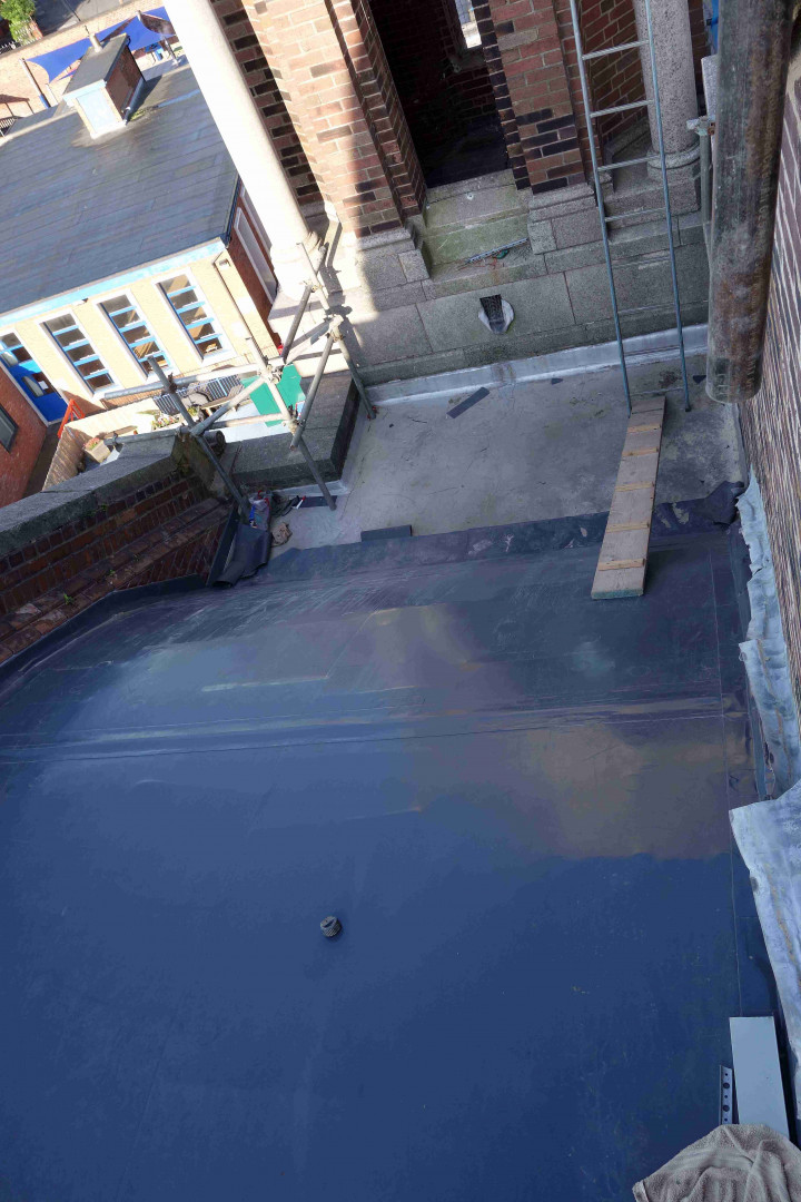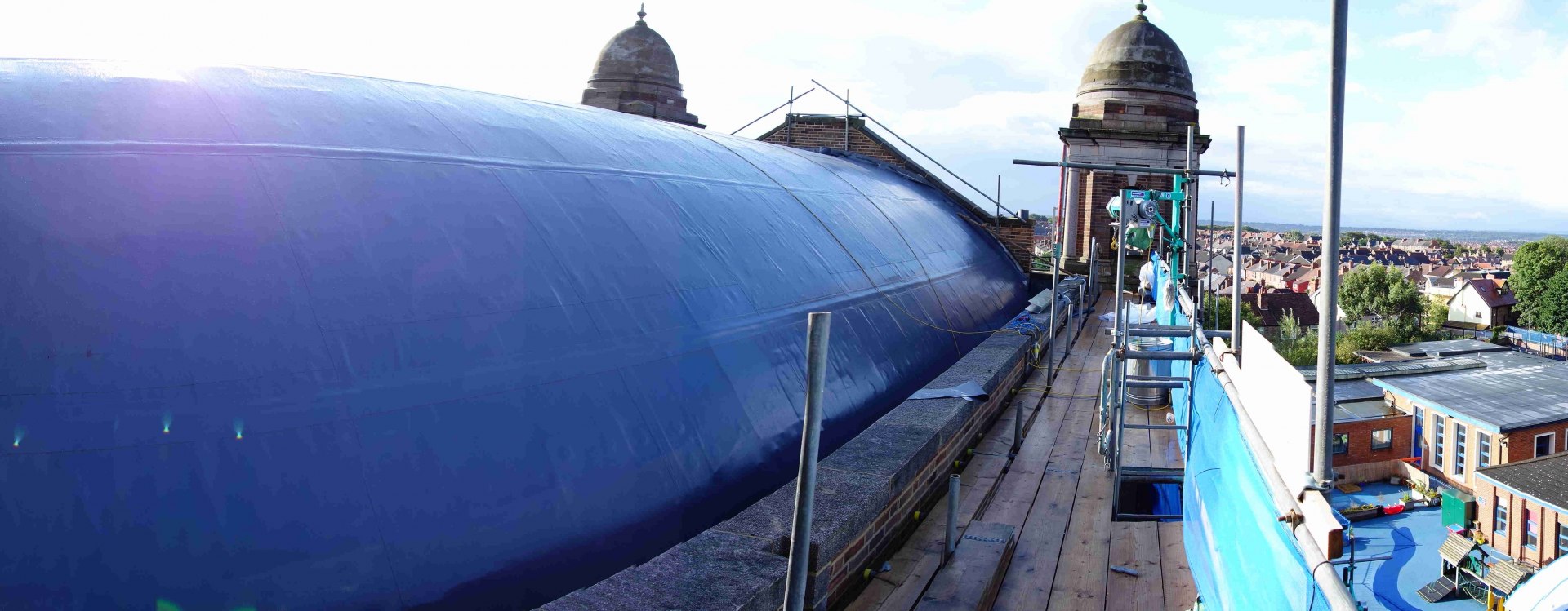 23rd July: Outside works – repairs & insulation of the barrel roof, repointing the brickwork